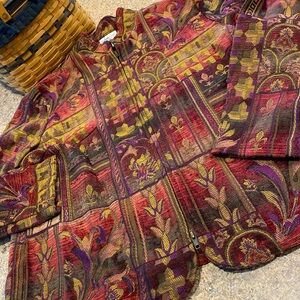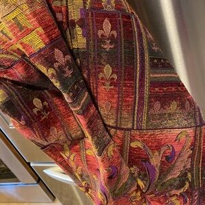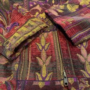 Coldwater Creek Blazer Jacket XL Zip Up with a Floral Design. This is in used condition showing all over wear but it should have lots of life left in it. It smells musty from storage. Since it is used and isn’t new there may be imperfections. Dry Clean only. Measurements are approximate and colors may be off because of lighting.