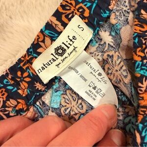 Vibrant floral pants with orange and blue patterns. Comfortable and stylish design. So comfy! Like new.