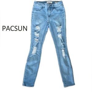 PacSun jeans, sky blue jeans, ripped skinny jeans, y2k denim, gen z jeans, soft girl jeans, mall girl aesthetic, skinny jeans size 25, distressed denim, light wash jeans, pacsun women jeans, casual denim, trendy jeans