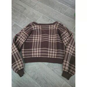 Hollister Brown Plaid Knit Cardigan Sweater Long Sleeve Button Front Women Large