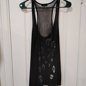 Black Racerback Tank Top Floral Skull Graphic Sheer Back Sleeveless