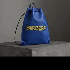 Burberry's modern take on traditional design and manufacturing gives the brand an updated vision that captures the spirit of all generations without ever denying its true heritage.. This Burberry backpack in blue denim blue calf leather includes a top handle, a main internal compartment, a drawstring acting as a shoulder strap, a Burberry check interior lining and a contrasting graffiti-style Burberry logo.