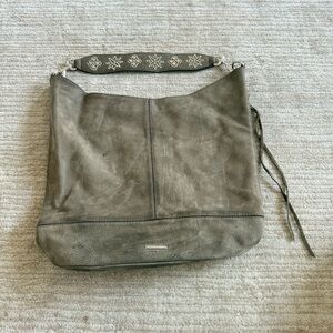 Rebecca Minkoff Bucket Studded Suede Silver Leather Shoulder Bag