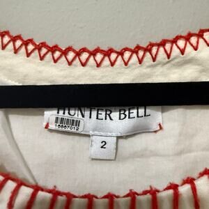 Hunter Bell Marley Dress in Summer Embroidery Cream. Women's Size 2. Features circle neckline, short flutter sleeves, embroidered motifs allover, side zip closure, fitted bodice with embroidered detail, and a long maxi length tiered skirt, lined. 100% cotton. Great used condition, no notable flaws. Retail $565.