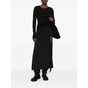 : black raw-hem wrap design tie fastening logo embroidered high-waisted