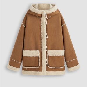 FAUX SHEARLING HOODED POCKET DUFFLE JACKET XS (US 2)