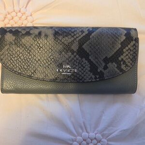 Chic Coach clutch with a striking snakeskin design. Perfect for adding elegance to any outfit.
