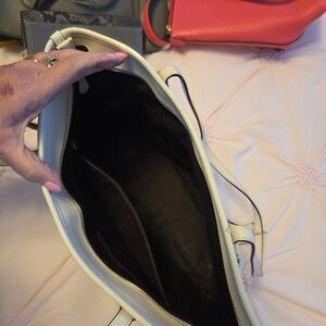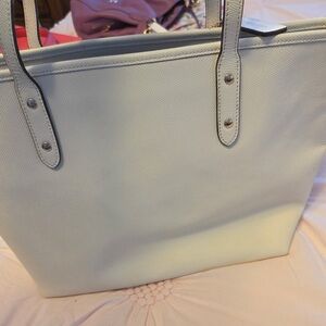 Stylish Coach tote in cream. Features elegant embellishments. Ideal for a chic look.