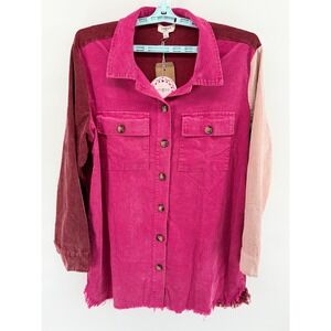 Umgee Color Block Corduroy Raw Hem Shirt Shacket Pink Burgundy Size L Boho