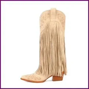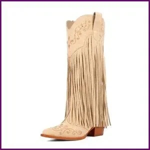 Style: Western cowboy boots with embroidered and fringe detailing