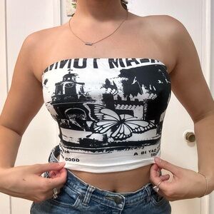 💙Black and white vintage bandeau tube top Size Small
