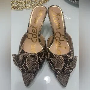 Sam Edelman Snakeskin Mules with Buckle Detail