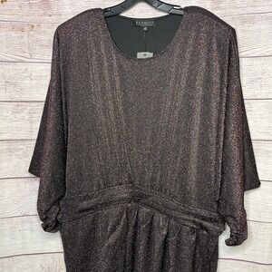 Eloquii Dress Dolman Sleeves Tulip Hem Lurex Metallic Sparkly Black New Size 24