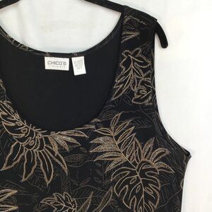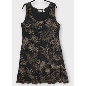 Chico's 3 Travelers Sleeveless Dress Women's XL Black Leaf Print Tropical Vacay
