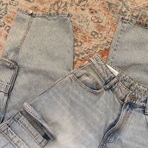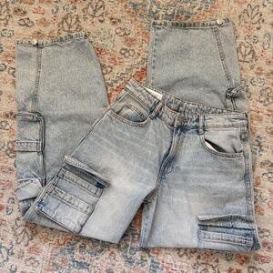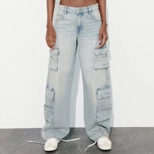 Zara ZW Mid-Rise Baggy Cargo Denim Jeans — Size 2