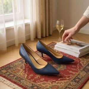 Halston HH-SAMUI-S, vegan leather heels, navy office pumps, classic dress shoes