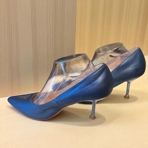 Halston Blue Vegan Leather Pointed Toe Heels Size 10