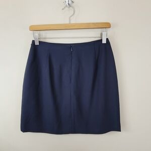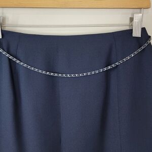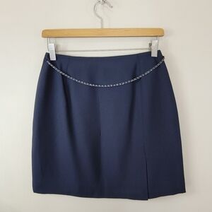 Black mini skirt with draped chain detail on the front. Back zip, lined.