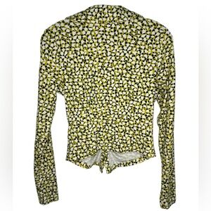 Maeve by Anthropologie Ruched Button-Front Shirt Yellow Abstract Print Small