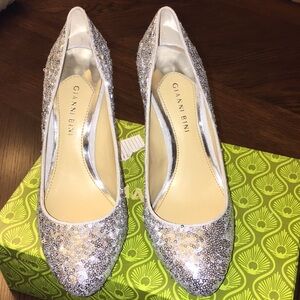 Trending, glam- high heels- Gianni Bini; Silver Heels; 8.5