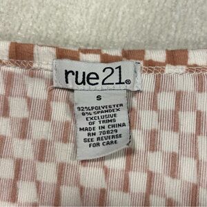 Rue21 Y2K Tan and White Long Sleeve Wavy Checkered Bodysuit Button Check Snap