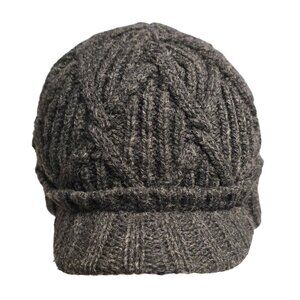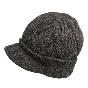 Coal Wool Knit Brimmed Cap Lined Beanie Dark Gray Stretchy Warm Winter Hat boho