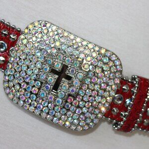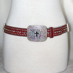 Western Red Bling Cross Belt & Buckle Aurora Borealis AB Crystal Accent ML