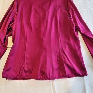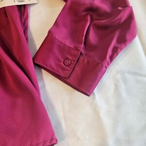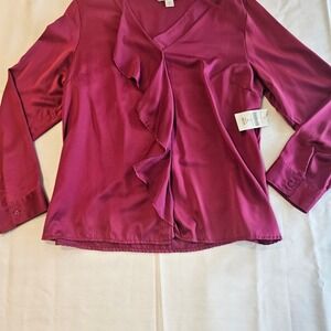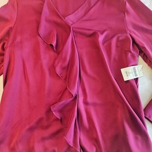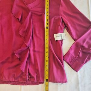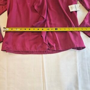 Coldwater Creek Ruffle Front Long Sleeve Blouse, Magenta Satin, Petite Large — New with Tags.