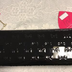 Betsey Johnson Black Bow Gold Chain Clutch Crossbody PVC NWT