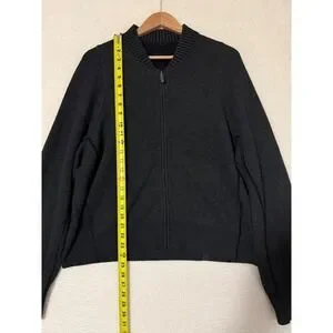 Lululemon Sweater Womens 12 Gray Merino Wool Zip Up Bomber Knit Jacket Cardigan