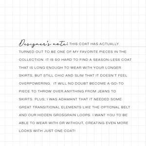 Iconic and timeless coat featuring an optional belt and hidden loops. Sz 4. Wrinkle resistant and do comfy for travel!