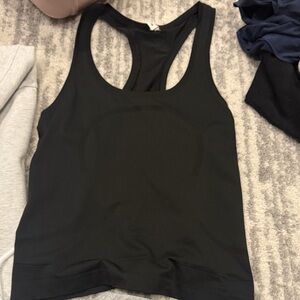 Stylish black racerback tank top. Perfect for workouts or casual wear.