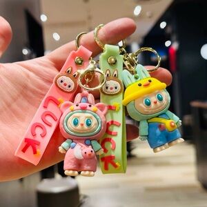 1 PC Handmade Labubu Keychain-Cute Bunny Key Ring Toy Rubber Pendant-Gift