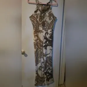 Chic jumpsuit with paisley design. Halter neckline. Ideal for versatile styling.