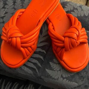 Bold orange sandals with a unique knotted design. Ideal for a standout style.⭐️⭐️⭐️⭐️⭐️$10 SALE
