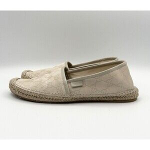 Gucci Off White/Cream GG Canvas and Leather Slip On Espadrille Flats EU 37.5