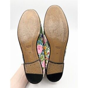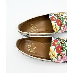 Gucci x Ken Scott Jordaan Floral Print Loafers Gold Horse-bit Accents Sz EU 38
