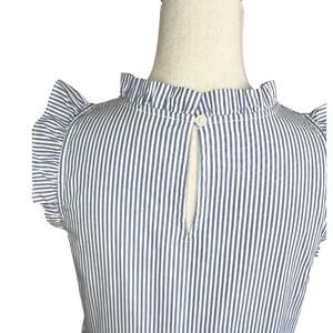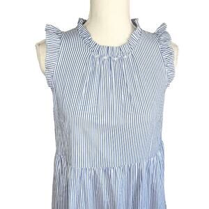 J. CREW Blue & White Stripe dress Flounce Searsucker Sleeveless preppy Tiered