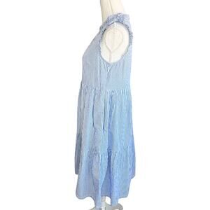 J. CREW Tiered Blue & White Stripe Flounce Searsucker Sleeveless Dress preppy