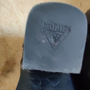 Stylish John Fluevog slingback shoes in pink and purple. Unique design with heart detail.