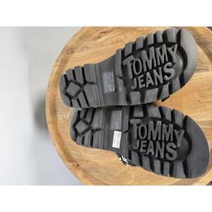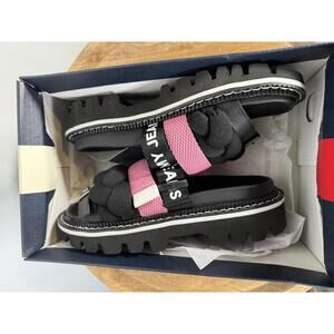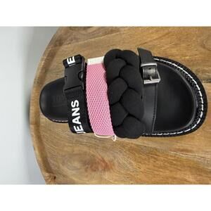 NWB Tommy Jeans Black Pink Braided Strap Slide Sandals Women’s Designer Size 6
