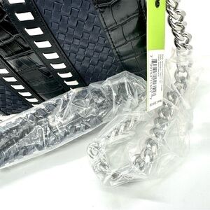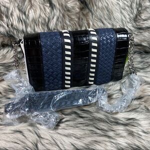 Hanna Leather Shoulder Purse Bag Navy Woven Embossed Crocodile Snake Print