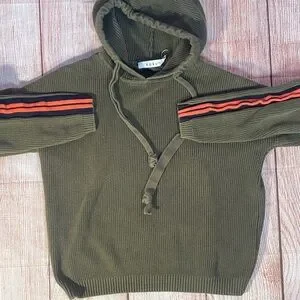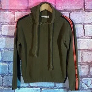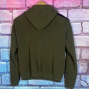Kokun Women’s Green Knit Hoodie Medium Ribbed Pullover Sporty Athleisure