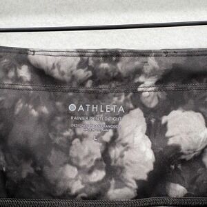Athleta Rainier Printed Tight Leggings Womens L Black Floral Zip Pockets Ankle.