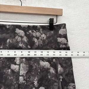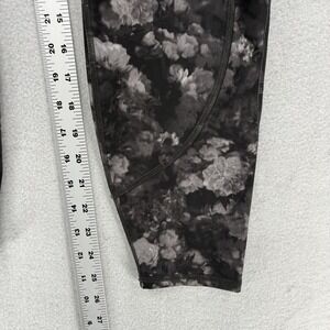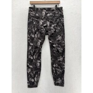 Athleta Rainier Printed Tight Leggings Womens L Black Floral Zip Pockets Ankle