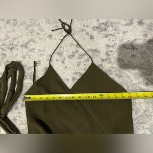 Olive green Silk Halter Tie Top with silk Belt Medium Haute Hippie