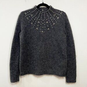 EUC Sezane Regina Rhinestone Pearl Mohair Wool Sweater Charcoal Small