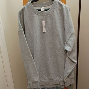 Oversized cozy gray sweatshirt with small white dots as decor which I didn't even see . Soft fabric. Perfect for casual wear or could even be dressed up.