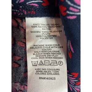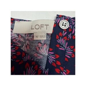 -A charming navy blue blouse by LOFT adorned with a delicate all-over floral print in shades of red and pink