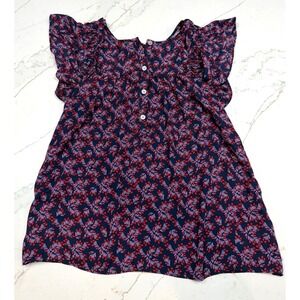 LOFT Women's Navy Floral Print Flutter Sleeve Button Front Blouse Top XS